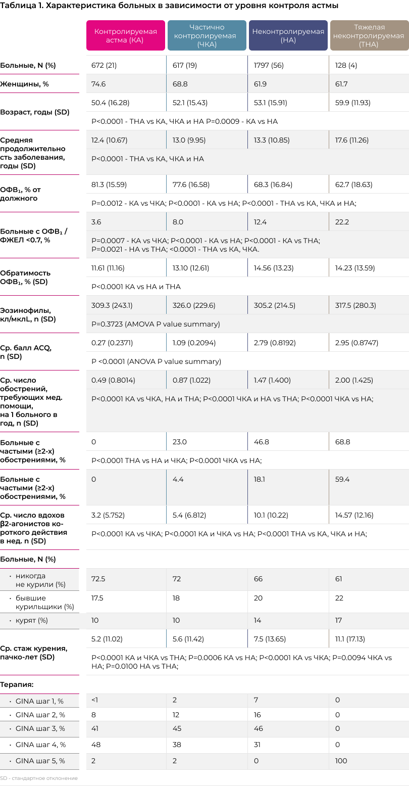 Эффективность комбинаций ингаляционных кортикостероидов и β-агонистов длительного действия в условиях реальной медицинской практики: результаты многоцентрового кросс-секционного исследования у российских ПАЦИЕНТОВ С БРОНХИАЛЬНОЙ АСТМОЙ