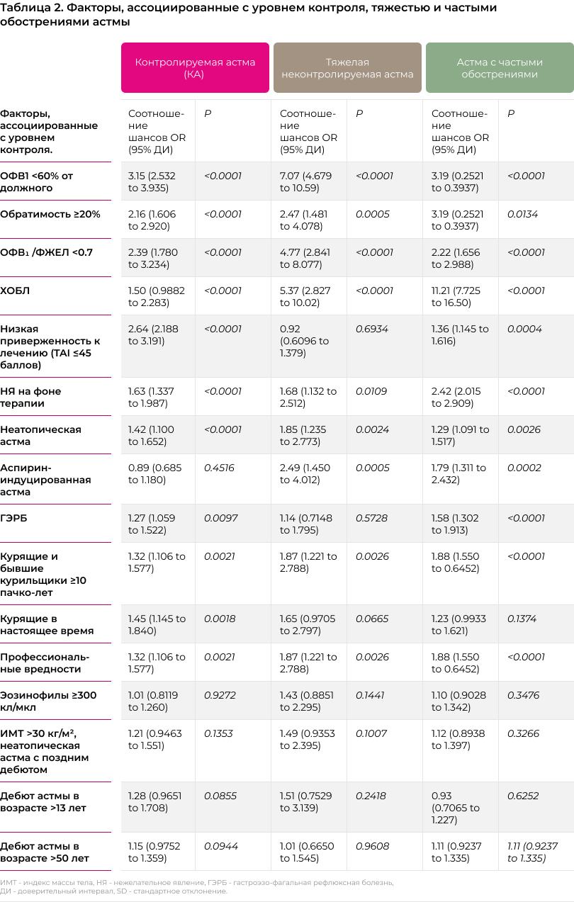 Следует отметить, что настоящее исследование не смогло предоставить должную оценку фенотипам тяжелой астмы из-за того, что подобные больные относительно редко встречаются в практике врачей первичного звена.